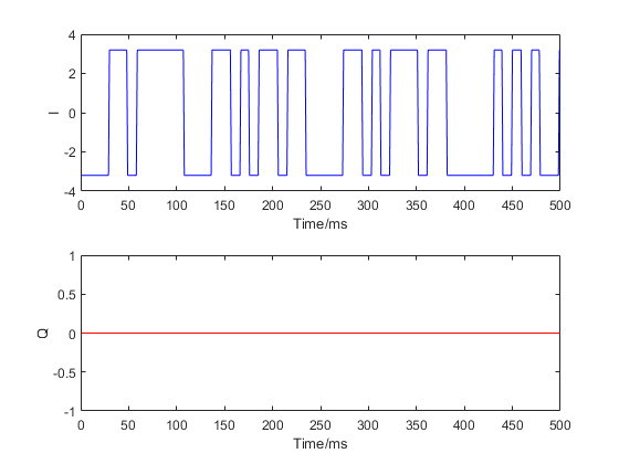 In figure 10a, some signals can be observed on the Q channel as some power are distributed to Q channel during transmission process. The signal amplitude on Q channel is much lower than the amplitude on the I channel.
