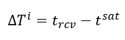 Where $t_{rcv}$ is the reception time of the signal at a receiver and $t^{sat}$ is the emission time of the signal from a GNSS satellite. Note that the time scale of the receiver (via the receiver clock) is different with the time scale of the GNSS satellite.
