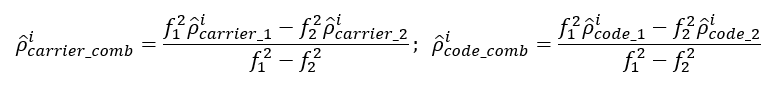 Several GNSS pseudorange measurement combinations are [3] (where $i=1,2$ are indication of using $f_{1}$ and $f_{2}$):