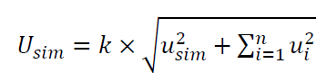 Where $u_{sim}$ is the standard uncertainty obtained from an MC simulation. $u_{i}$ is the standard uncertainty from the $i-th$ contributor that is not considered in the MC simulation ${i=1,2,3,…,n}$.