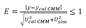 Where $y$ is a CMM measurement (either contact or non-contact CMM), $y_{calCMM}$ is a calibration value obtained by a higher-accuracy CMM, $U_{calCMM}$ is the expanded uncertainty of the calibration value $y_{calCMM}$, $U_{sim}$ is the expanded uncertainty from MC simulation combined with other uncertainty factors (ISO 15530-4).