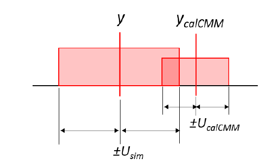 Figure 2 above shows the plausibility illustration. From figure 2, the estimated (expanded) uncertainty $U_{sim}$ is considered valid if there is intersection between $y$ associated with $U_{sim}$ and the interval $y_{calCMM}$ associated with $U_{calCMM}$.