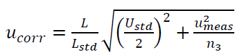 - $u_{corr}$: uncertainty contributors from errors caused by a reference gauge block measurement error. This correction is only applicable for length and size measurement but not for form measurements.