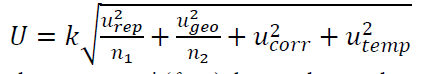 Finally, the uncertainty estimation based on ISO/DTS 15530-2 is calculated as: