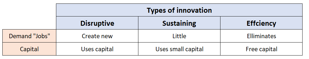 Types of innovation: Disruptive innovation, sustaining innovation and efficiency innovation