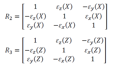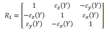 When the Y-axis moves, not only straightness error, but also there will be a rotational error on the Y-axis (bridge) with respect to the coordinate system of the CMM table. This rotational error can be represented as follow:
