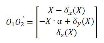 Also when the X-axis moves as many as X distance, then the coordinate transformation from $O_{1}$ to $O_{2}$ is formulated as: