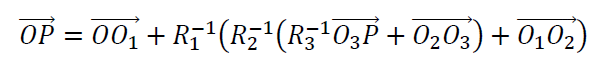 Then, the coordinate of point $P$ with respect to the coordinate system of the CMM table is $(X’,Y’,Z’)$ is determined as follow: