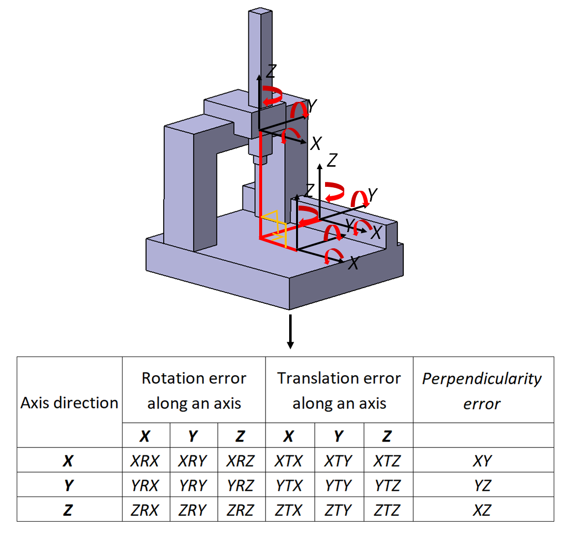 Hence, if a position needs to be reached, the numerical control system will command a motion to the position after being compensated as many as $\Delta X, \Delta Y, \Delta Z$.