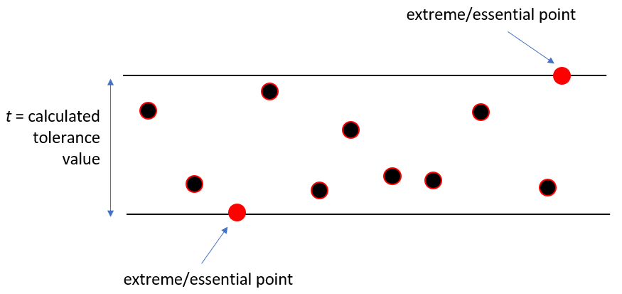 That is, unlike least-square fitting [2], minimum-zone fitting is very sensitive to outlier. If there is an outlier, the outlier points will be considered as the extreme point and the tolerance calculations will become very large.