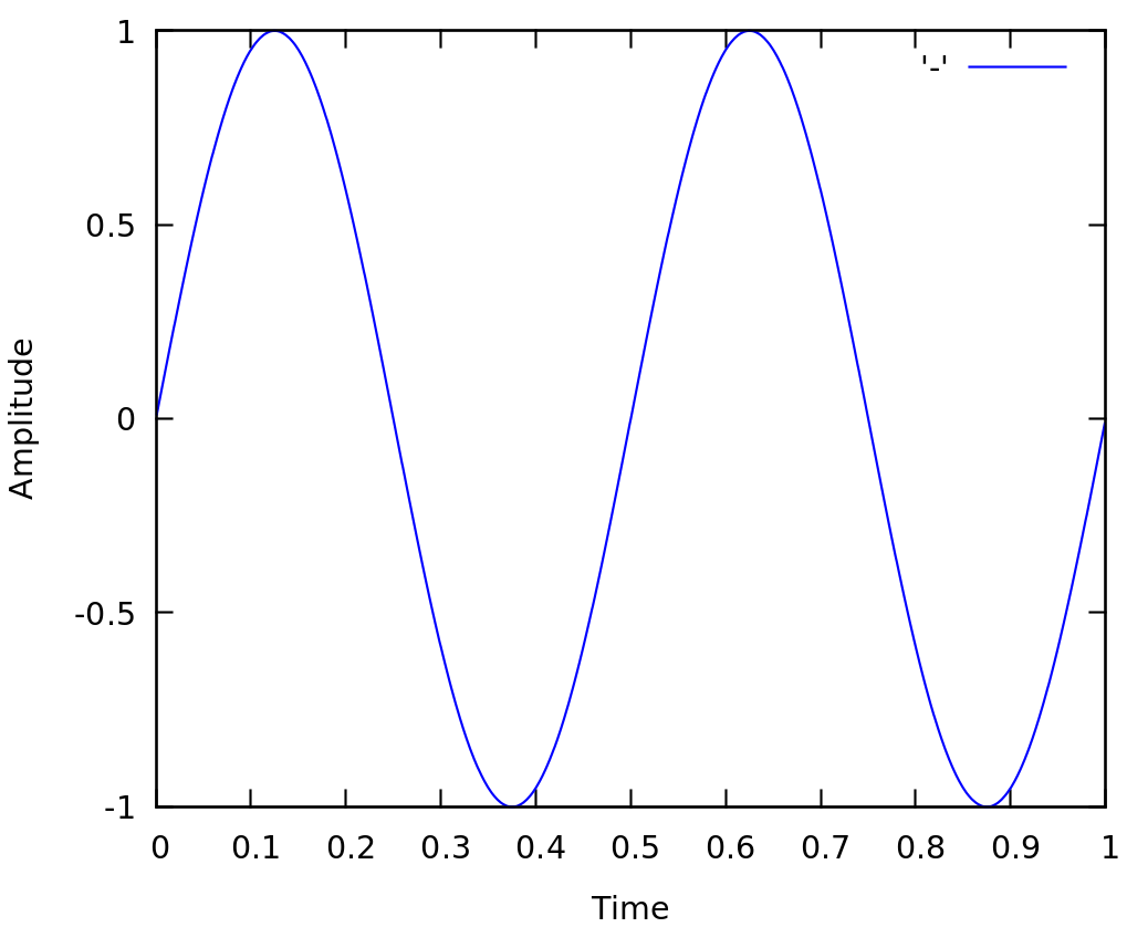 By applying the correction, we can calculate the sine wave correctly. The result of the correct calculation is shown in figure 2. In figure 2, we can see that the sine wave has amplitude of one and has two cycles within one second, that is 2 cycle/period.