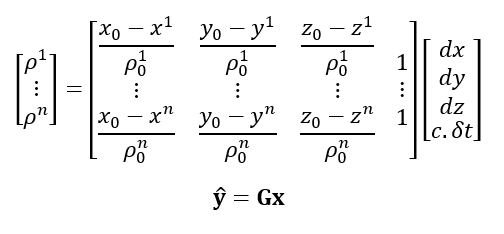 Where G is the design or geometry matrix of navigation equations.