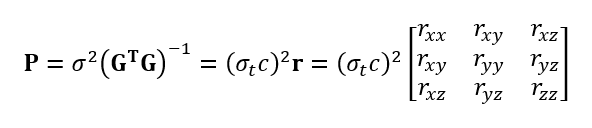 From matrix r, the dilution of precision of positons in various directions can be determined. This matrix relates the geometrical relations between a subject and its beacons (a GNSS receiver and satellites) in term of final positon error behaviour.