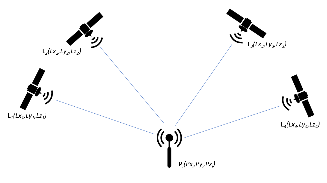 The equation above is non-linear. There are several methods to solve this non-linear equation to find the location of P. One of the common methods is by using linearisation with Taylor expansion method as for the case of GNSS positioning.