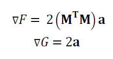 The fitting solution for parameter $\bf a $ that is the minimum value of $F=\lambda G$ can be obtained by applying gradient operator: