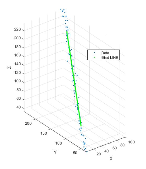 The MATLAB code implementation for 3D line fitting is as follows: