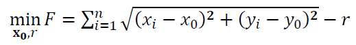 Hence, the objective function of the circle fitting process is: