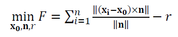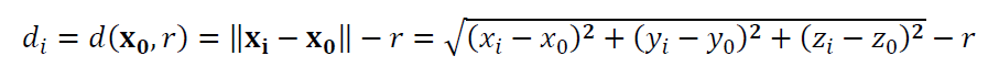 Hence, the objective function of the sphere fitting process is: