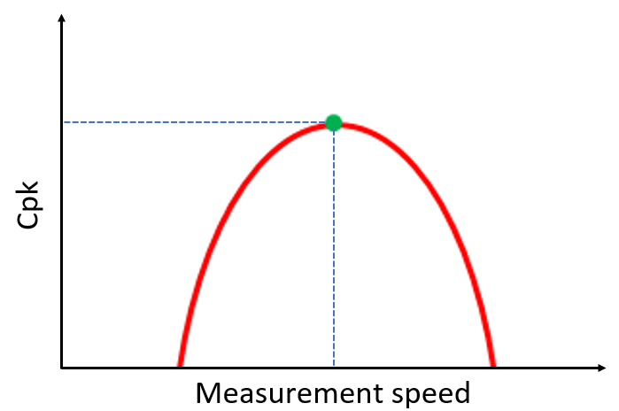 Figure 4 below shows the trade-off between process capability and measurement speed. Process capability, typically represented by Cpk indices, will have high value when we have high accurate measurement results.