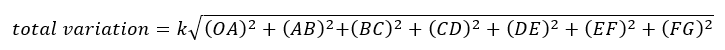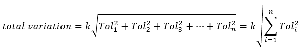 In statistical tolerance analysis, the total accumulated variation (total variation) on the KC of an assembly is the root of a sum-squared addition of each tolerance in a tolerance chain.