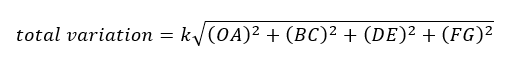 The total variation of the tolerance stack-up in figure 2 is formulated as: