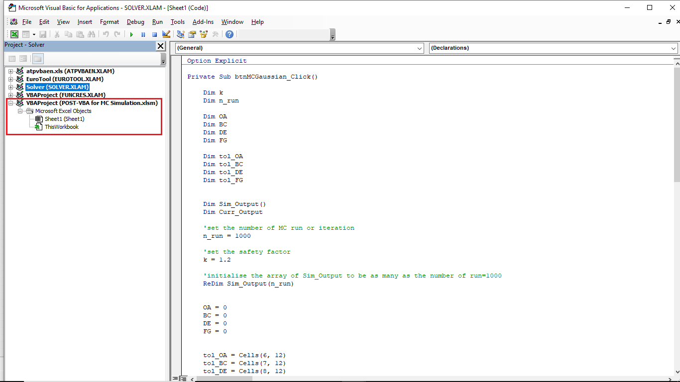 The tutorial will be shown from the simplest step (starting from how to show the developer ribbon in excel) until writing scripts to implement the MC simulation.