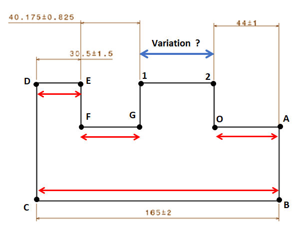 Figure 2 below shows the tolerance chain and the tolerance values on a part that we want to analyse with MC simulations by using VBA macro in Excel. In figure 2, the KC that we want to evaluate the stack-up variation is the variations of the distance between point 1 and point 2.
