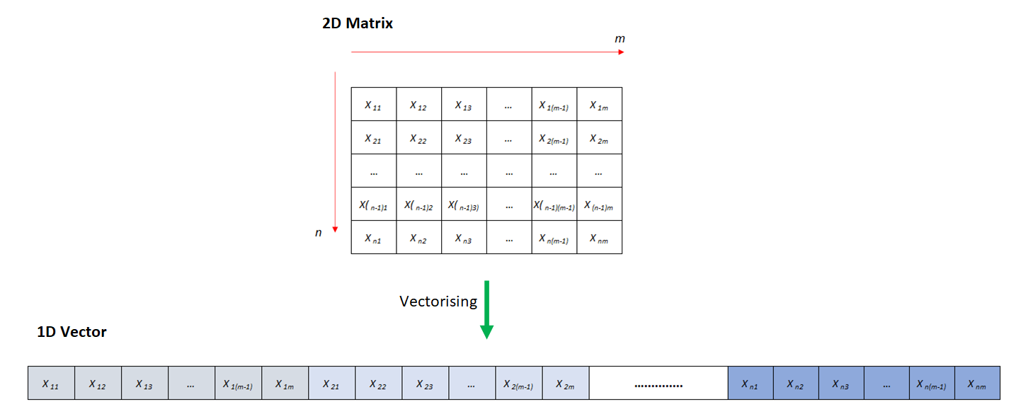 Figure 1 below shows the illustration of vectorising a 2D matrix data structure into 1D vector structure.